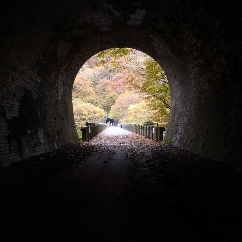 橋を上ると、アプト式鉄道時代の廃線敷を利用した遊歩道があります。第5号トンネル(横川側)第6号トンネル(軽井沢側) 写真は5号トンネルから。以上4点ともGRデジタルⅢ ノートリミング。