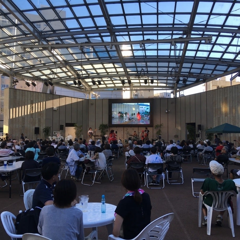 盛況のオリオンスクエア! ステージを終えてビール片手にiphoneでとった一枚!